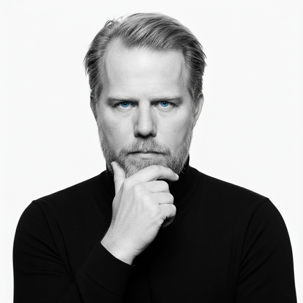 Beim obigen Bild habe ich die Attribute aus dem berühmten Steve-Jobs-Porträt ausgelesen und dann über mein Foto gestülpt – mit einem blauen Touch.