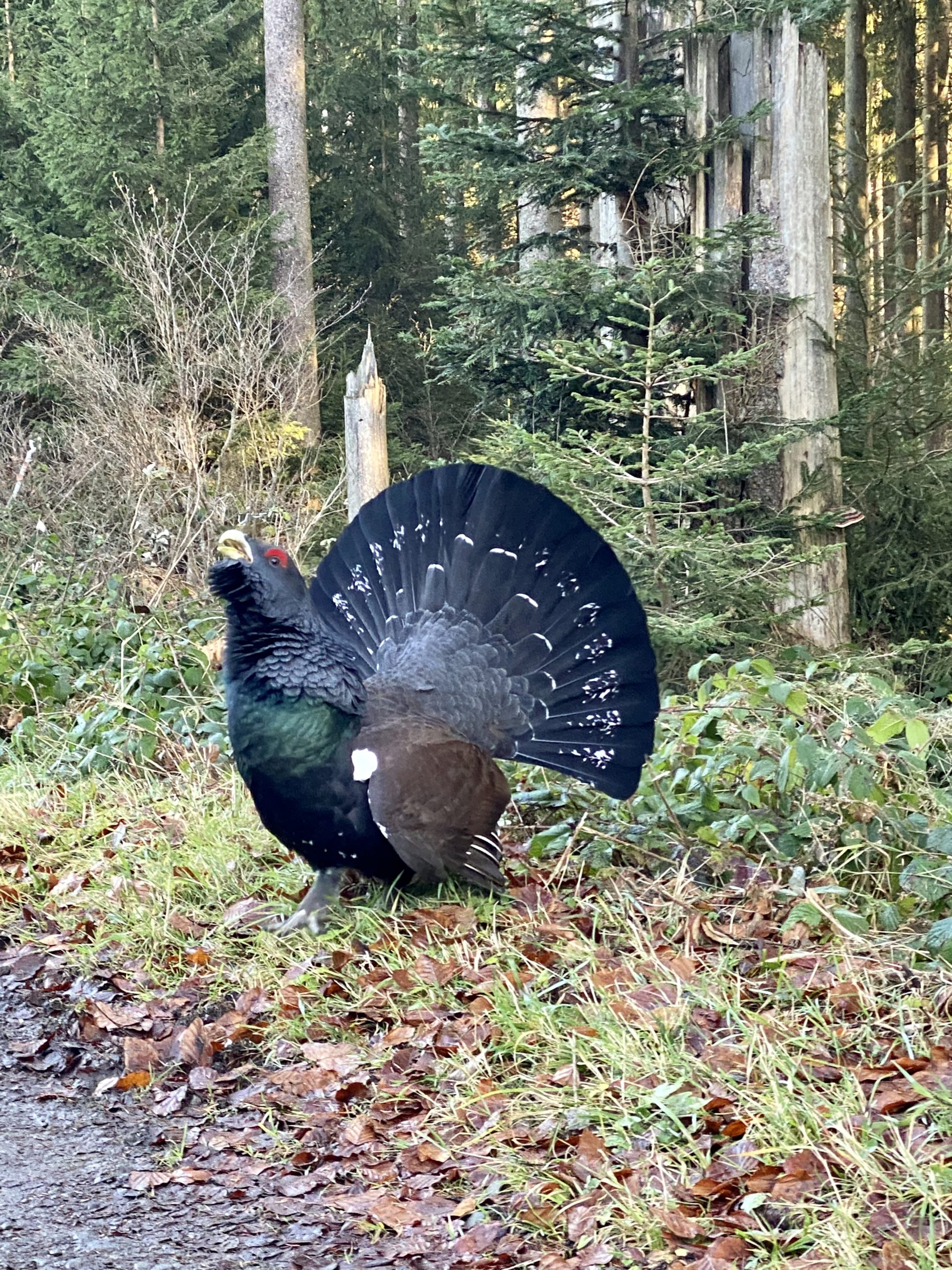 Okay, das ist die Erklärung, warum es den Auerhahn dort im Wald gibt. Aber wieso ist «mein» Vogel forsch statt scheu und stolzierte minutenlang um mich herum?